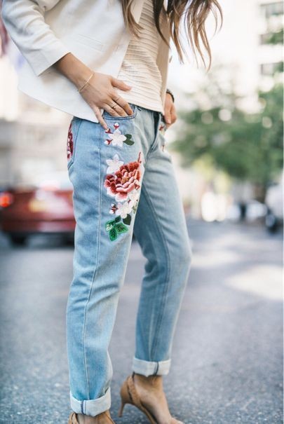 Τα τζιν με κεντήματα θυμίζουν κάτι από τα ρούχα των γιαγιάδων μας αλλά διαθέτουν και έντονο 90s χαρακτήρα, γεγονός βέβαια που δε μας εκπλήσσει αφού το στιλ της συγκεκριμένης δεκαετίας κυριαρχεί παντού και φέτος, με τα πιο ενημερωμένα κορίτσια να αξιοποιούν τα παλιά κομμάτια που μπορεί να υπήρχαν στη ντουλάπα τους ή να δημιουργούν τις δικές τους DIY εκδοχές. Ταιριάζουν άψογα με ρούχα σε λευκό και μαύρο χρώμα και είναι ιδανικά για να δώσουν ένα μικρό αλλά σημαντικό twist στο spring ντύσιμό μας.