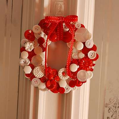 Στεφάνι από κουμπιάΚρατήστε και εδώ την διχρωμία άσπρο – κόκκινο και δημιουργήστε την μοντέρνα και φρέσκια έκδοχή του χριστουγεννιάτικου στεφανιού.