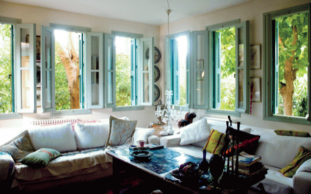 Ο αρχιτέκτονας και πρώην άνδρας της, Γιάννης Κούκης, που φυσικά έχτισε το σπίτι, γνώριζε πως η ιδιοκτήτρια θα επιθυμούσε πολλά παράθυρα στο σαλόνι. Και της τα έδωσε.