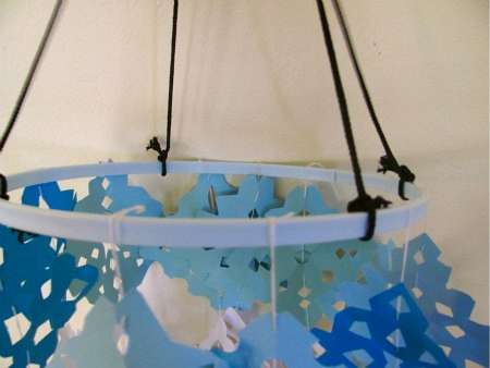 Τέλος, δέστε το στεφάνι σε διάφορα σημεία με κομμάτια από κορδόνι και το snowflake mobile σας είναι έτοιμο να στολίσει το δωμάτιο!