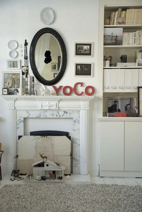 Πάνω από το τζάκι μπορείτε να τοποθετήστε κορνίζες σε πολλά μεγέθη και σχέδια. Τip: κλείστε το τζάκι αφήνοντας το παιδί σας να στήσει εκεί τα παιχνίδια του.