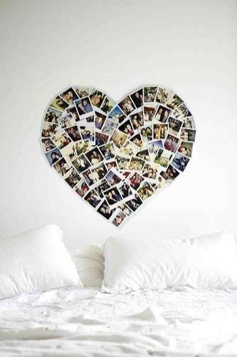 Μην κρατάτε τις αναμνήσεις σας αποθηκευμένες. Τυπώστε τις και φτιάξτε πάνω από το κρεβάτι σας ένα φωτογραφικό κολάζ σε σχήμα καρδιάς. Εάν έχετε φωτογραφική μηχανή polaroid ακόμα καλύτερα.