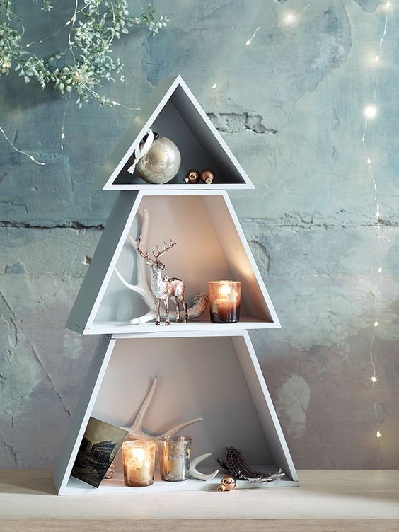 Μια σειρά από ράφια σε κωνικό σχήμα μπορούν να γίνουν ένα πρωτότυπο εναλλακτικό δέντρο