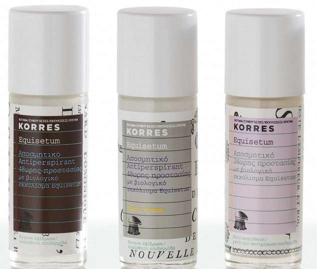Να δοκιμάσετε οπωσδήποτε την πιο φυσική επιλογή στην αγορά απoσμητικών: To roll-on Equisetum της Korres (στα φαρμακεία) είναι βιολογικό και έχει 24ωρη προστασία.