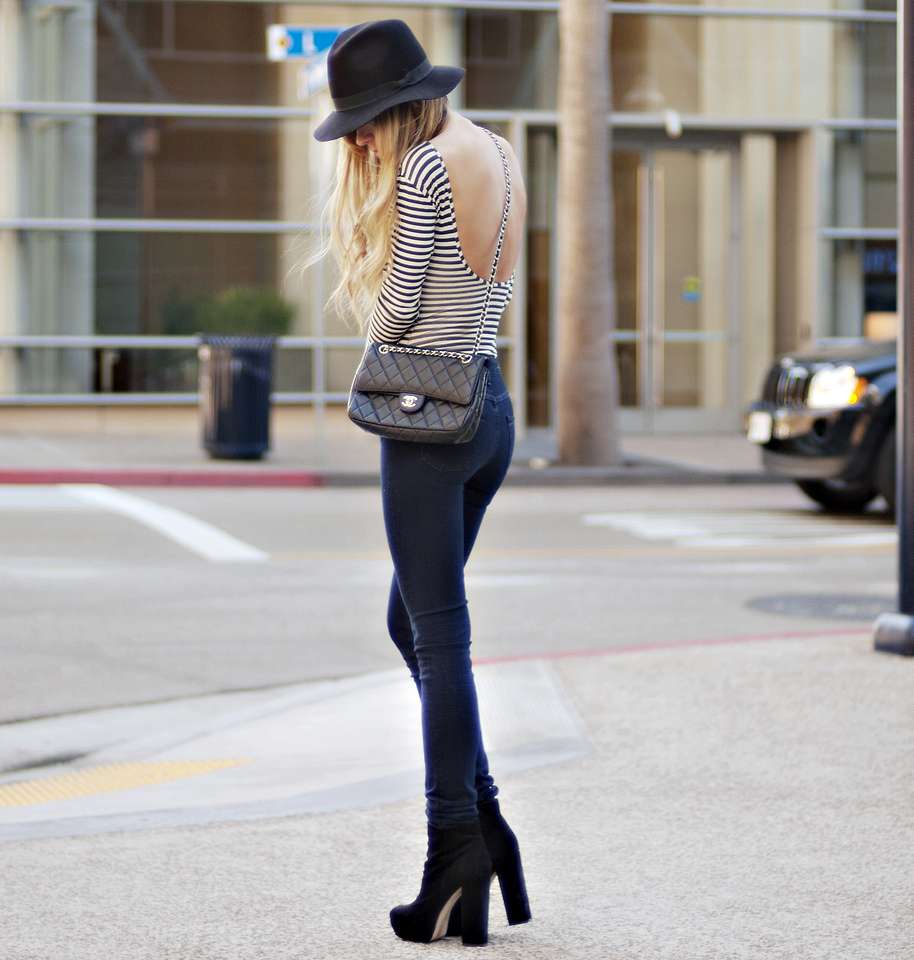Δεν είναι απλό να είσαι μίνιμαλ. Όταν όμως είσαι μίνιμαλ είσαι απλός και άρα κομψός. Πρόκειται για ένα παλιό, καλό κανόνας που ισχύει και για άνδρες και γυναίκες, και αποτελεί σελίδες ολόκληρες στη βίβλο του γαλλικού στυλ. Eπιλέξτε να λάμψετε μέσα από καθαρές γραμμές και μονόχρωμα σύνολα εξασφαλίζοντας ένα σέξι και προσεγμένο αφαιρετικό αποτέλεσμα. Δείτε τα παρακάτω look και πάρτε ιδέες:Το κομμάτι Blue JeansΈνα κλασικό blue jean συνδυασμένο με ένα εφαρμοστό τοπάκι-μαρινιέρα με ανοιχτή πλάτη (βασικό) κι ένα ζευγάρι ancle boots σε μαύρο χρώμα. To καπέλο και η τσάντα δίνουν τις τελευταίες french πινελιές ενώς look που βγάζει μια χαραρή αλλά και σέξι διάθεση.