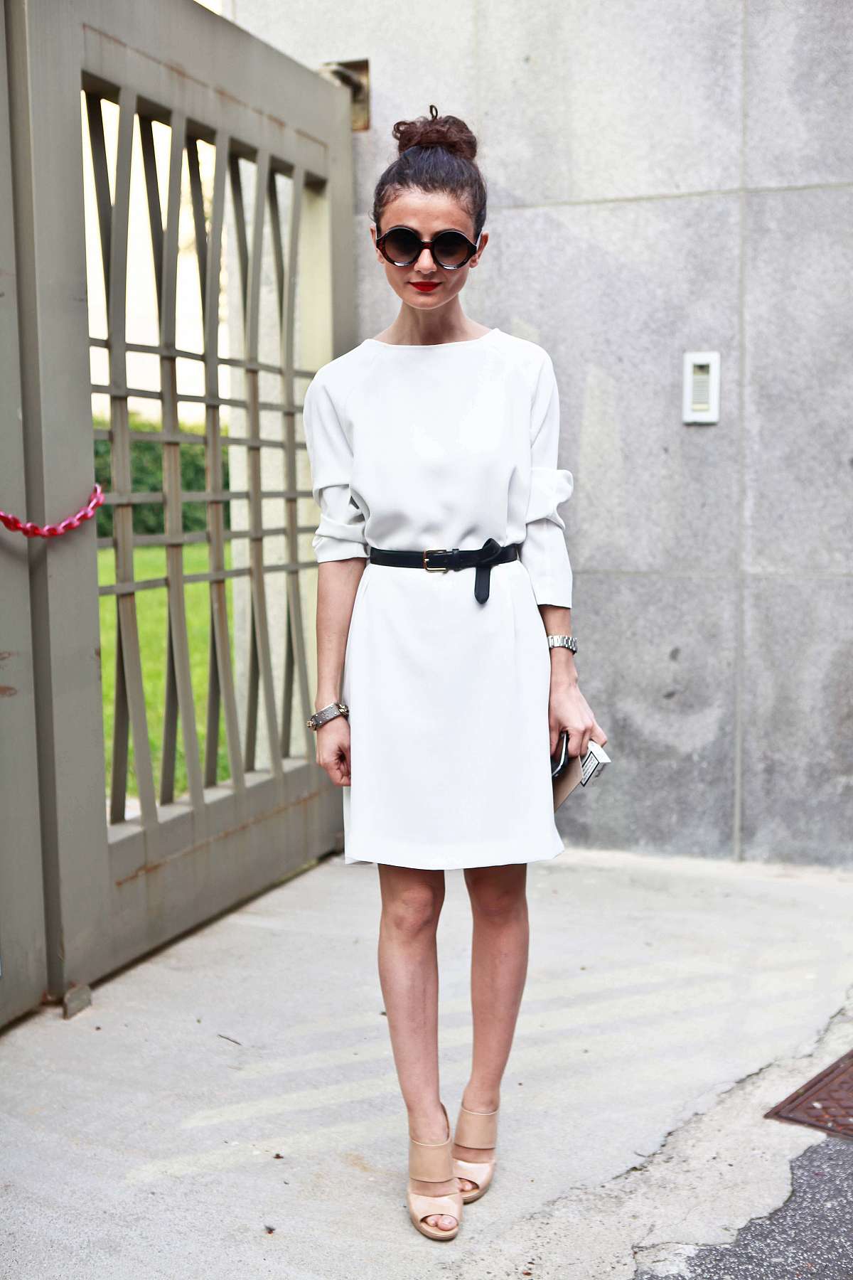 Lady-likeΛευκό φόρεμα σε chic γραμμή με "μαύρη ζώνη" στο στυλ! Beauty tip: Όσες αγαπάτε τα σοφιστικέ κόκκινα χείλη, να η ευκαιρία!