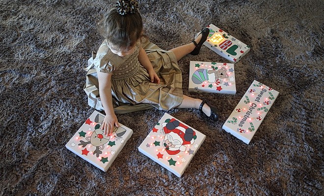 Για τις γιορτινές ημέρες δημιούργησε 5 μοναδικά χριστουγεννιάτικα σχέδια που θα διακοσμήσουν όλους τους χώρους του σπιτιού. Πρώτη φορά φέτος δημιούργησε χριστουγεννιάτικα στολίδια με τα αντίστοιχα σχέδια που έχουν τα καδράκια. Μια ολοκληρωμένη όμορφη πρόταση δώρου!