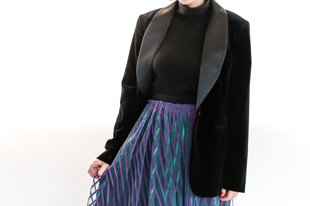 Φυσικά, υπάρχει πάντα το κομμάτι του τι θα φορέσουμε από πάνω ή πως θα συνδυάσουμε μία ιδιαίτερη φούστα σαν κι αυτή. Εμείς προτείνουμε ένα βελούδινο, μαύρο σακάκι Ralph Lauren που θα ενισχύσει το γιορτινό feel του look και συνδυάζεται τέλεια με τις υφές και τα χρώματά της. Βρείτε το στα καταστήματα Attica.