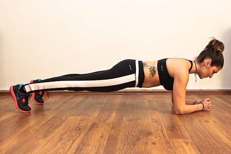 Τροποποίηση: αν δεν έχετε ακόμα καλή ισορροπία έτσι ώστε να τις κάνετε εναλλάξ, μπορείτε να τις κάνετε στατικές, 15 στο ένα πόδι και μετά 15 στο άλλο.Σανίδα στους αγκώνες (elbow plank)