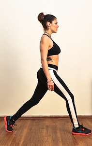 Τεχνική: κάνετε ένα βήμα μπροστά λυγίζοντας και τα δύο γόνατα σε γωνία 90 μοιρών. Ο κορμός κάθετος στο έδαφος και στην ίδια ευθεία με το κάτω πόδι. Επαναλήψεις: εκτελείτε προβολές εναλλάξ 15 στο κάθε πόδι (σύνολο 30), 5 sec διάλλειμα κ ξανά πάλι το ίδιο για 3 σετ.