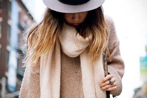 Ανοιχτά γλυκά χρώματα, fluffy κασκόλ και μπλούζες.