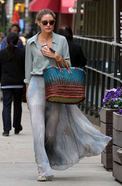 Η olivia Palermo με υπέροχη μακριά πλισέ με κοντή φόδρα.