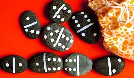 Θα χρειαστείτε μαύρες ή σκούρες πέτρες στο ίδιο μέγεθος -όσο γίνεται και κιμωλία ή λευκή μπογιά για ένα πιο ανεξίτηλο αποτέλεσμα. Σχεδιάστε πάνω τις ανάλογες τελίτσες και είσαστε έτοιμοι για παιχνίδι.Πηγή: growingagreenfamily.com