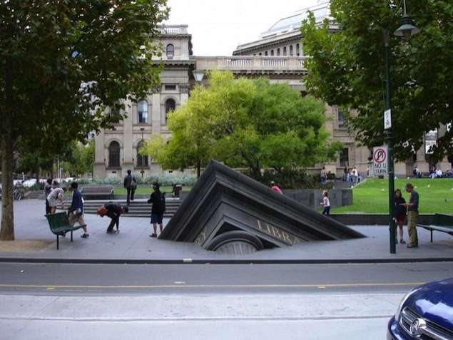 Έργα που μοιάζουν να βουλιάζουν ή να αναδύονται μέσα από την γη, το νερό, το τσιμέντο, τους τοίχους. Μοναδικές οπτικές ψευδαισθήσεις που τραβούν το ενδιαφέρον ενός μεγάλου κοινού, αλλά και των ίδιων των καλλιτεχνών αφού ο αριθμός αυτών που επιλέγουν να κάνουν βυθισμένα γλυπτά μεγαλώνει συνεχώς. Πάντως σίγουρα δεν περνούν απαρατήρητα. Να μερικά χαρακτηριστικά παραδείγματα.