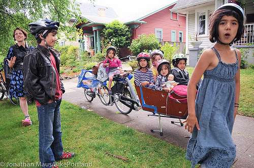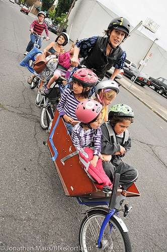 Μια σούπερ μαμά που δεν κολλάει πουθενά. Αυτή η πολύτεκνη μητέρα έξι παιδιών από το Πόρτλαντ της Αμερικής όχι μόνο πάει παντού με τα παδιά της αλλά έχει δημιουργήσει και ειδική πατέντα ποδηλάτου ώστε να μπορεί να πηγαίνουν όλοι μαζί και για ποδήλατο.